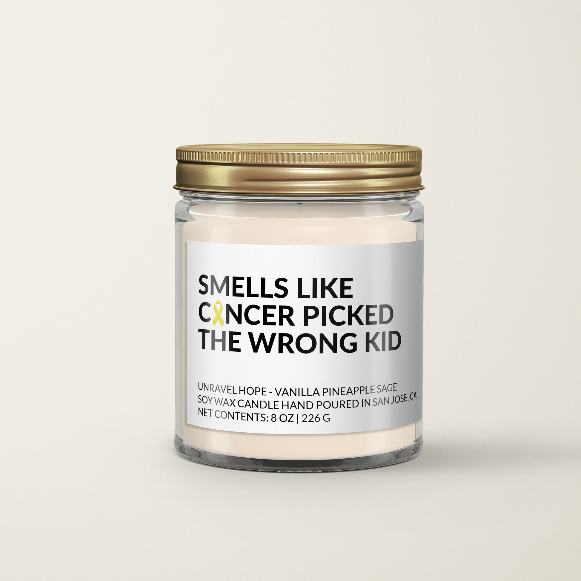 Bright pineapple, comforting vanilla, and calming sage come together in this special edition candle, created to honor Childhood Cancer Awareness Month. Poured in an 8oz straight-sided glass jar, it’s crafted with 100% soy wax for a clean, long-lasting burn.